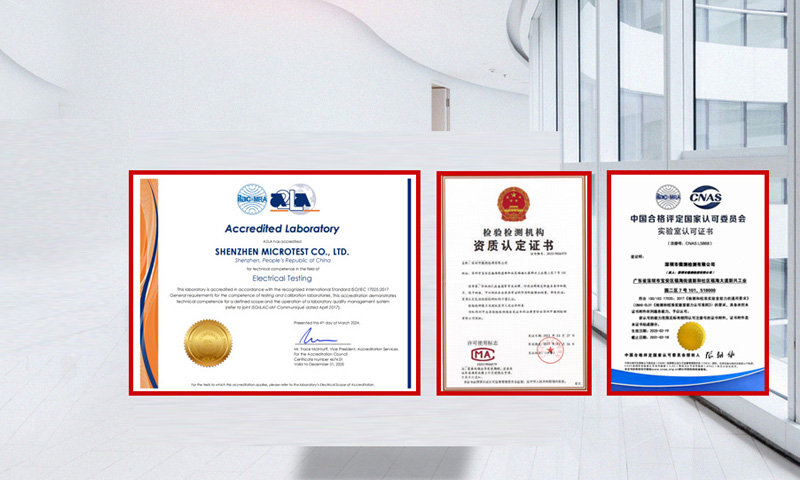 Microtest微測檢測已建立起20余個專業(yè)實驗室,128人的工程師團隊,10000㎡檢測科技園,已獲得CNAS、CMA、A2LA、CBTL、WPC、Bluetooth SlG等授權(quán)和認可,可為企業(yè)提供全球上百個國家的測試服務(wù)。